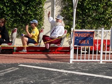 Santa and Mrs. Claus visited the Naples Lionel Train Museum on National Train Day. Dressed in Work Clothes and putting on a Santa Fe Engineer's Hat. He greeted children and handed out Candy Canes!